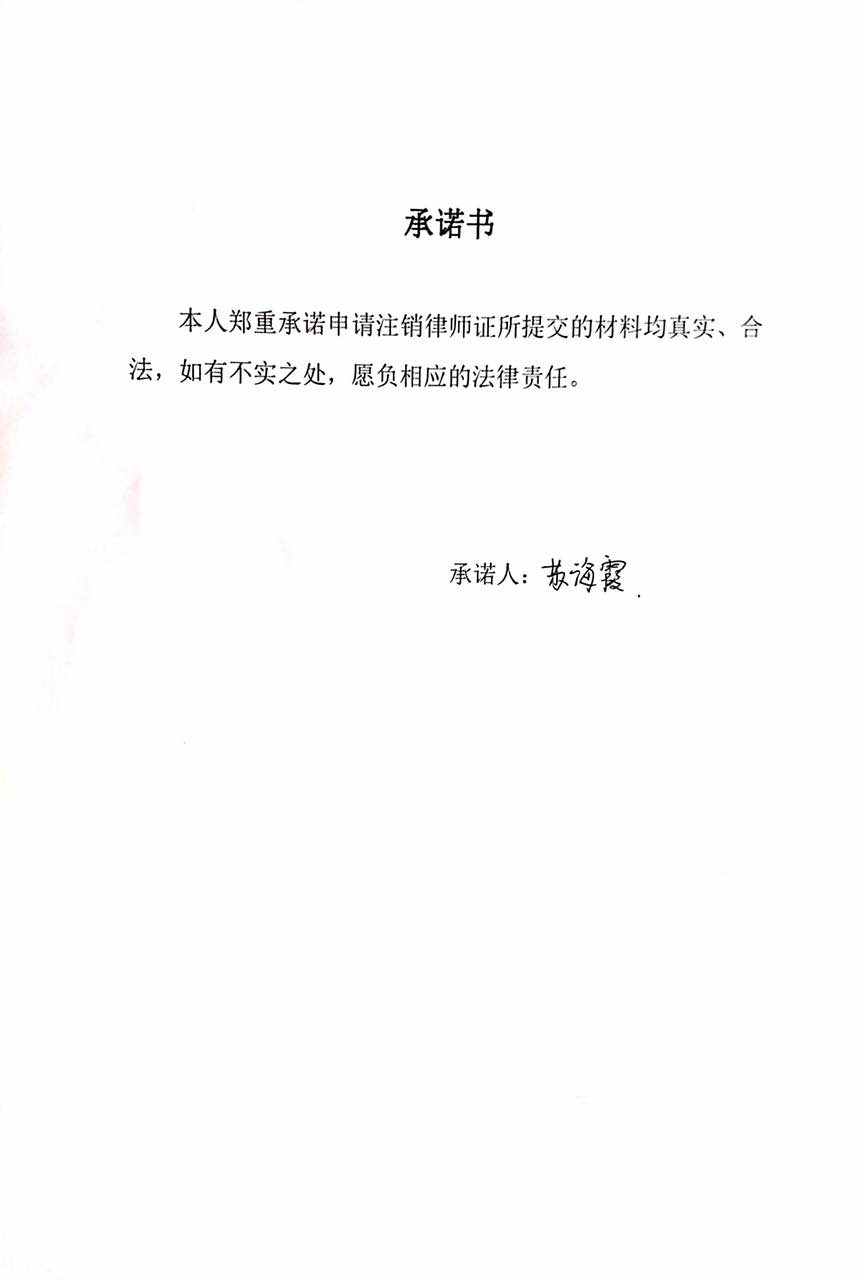 苏海霞律师执业证书注销审核承诺书