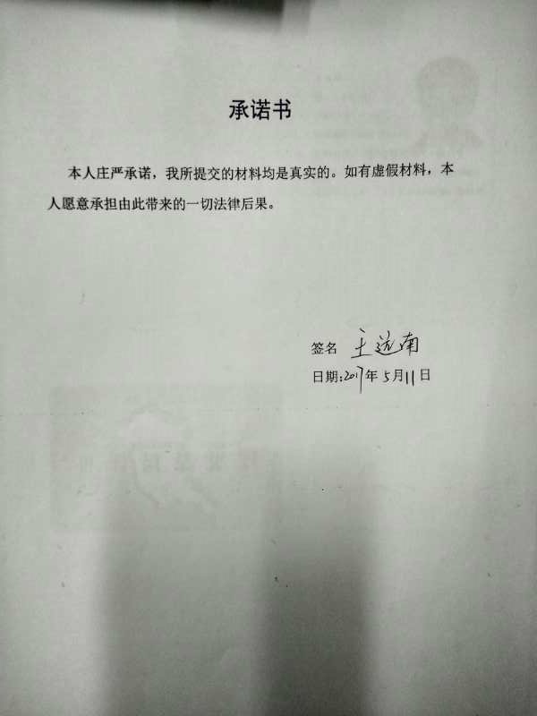王远南律师执业证核发承诺书