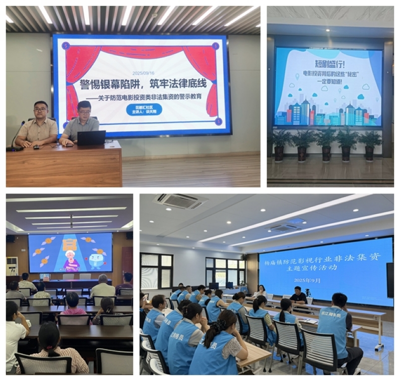 三是加大能力培训,夯实宣传实效。组织开展网格员、“法律明白人”等骨干培训,邀请法律专家结合“影视投资高额返利”“虚假内幕消息”等案例,揭示非法集资“低风险高回报”的虚假本质,增强识别和应对能力。景区面向老年群体、有投资意向居民等重点人群开展专题授课,联合市工信局举办讲座,解析诈骗话术,传授“看企业资质、看收益承诺、看资金流向”的“三看”辨别法,在各村(社区)在法治宣传栏、商户门店张贴海报200余张。邗江区组织网格员、法律明白人、普法志愿者聚焦防范影视行业非法集资主题开展专题学习,依托网格群推送“3分钟看懂影视非法集资”等短视频、相关警示通知、防范建议,生动展示非法集资的危害,普及防范技巧,增强群众风险意识。