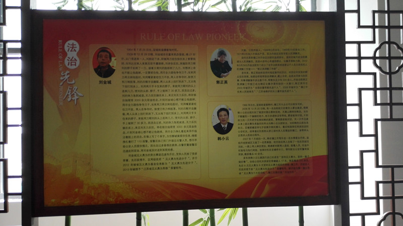 点即区级“德法共融”专题展区。在新近建成的区级法文化展厅内,划分一块区域,设立“德法共融”专门专题展区,通过法治人物和法治先锋两大板块,收集整理展示丹徒本地法治文化名人如杨一清、唐侃以及“见义勇为先进个人”和模范调解员的事迹和典故,用身边人、身边事传播正能量、感染群众。