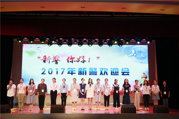 在“新警你好!”2017年新警欢迎会上,新警们集体朗诵诗歌《很庆幸我成为了你》,表达自己对戒毒警察这份职业的崇敬和向往。随后她们还结合自身专业、特长等进行了精彩的自我介绍。
